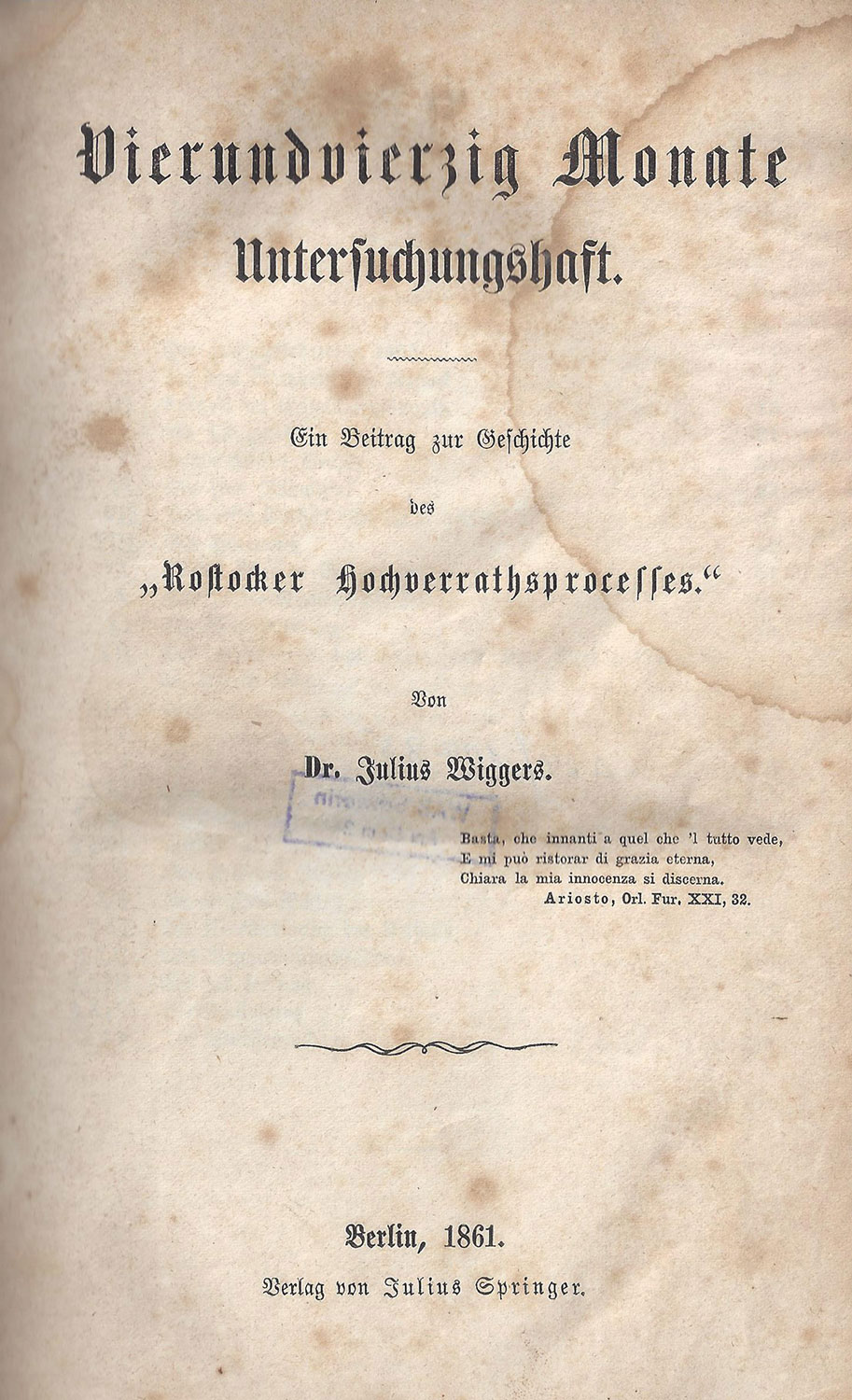 Im Juli 1852 werden die Professoren Christian Wilbrandt, Julius Wiggers und Karl Türk aus der Universität Rostock entlassen und im Mai 1853 mit neun anderen Demokraten in das Kriminalgefängnis Bützow eingeliefert, um sie in einem „Hochverratsprozess“ zu verurteilen. Sie erhalten unterschiedliche Zuchthausstrafen bis zu vier Jahren. Erst 1860 bekommen sie ihre bürgerlichen Rechte zurück. Revolutionäre Gutsbesitzer erhalten keine Strafen.